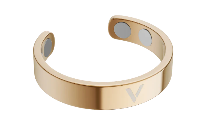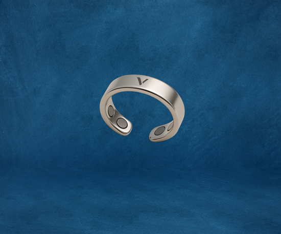 The V Ring uses natural magnetic therapy and acupressure—not sensors or apps—to support your body’s own systems.